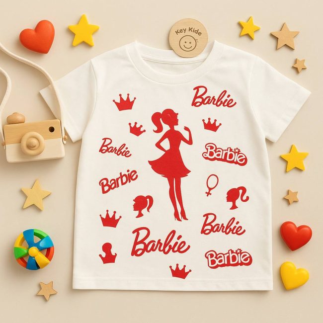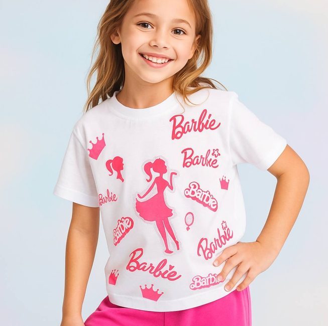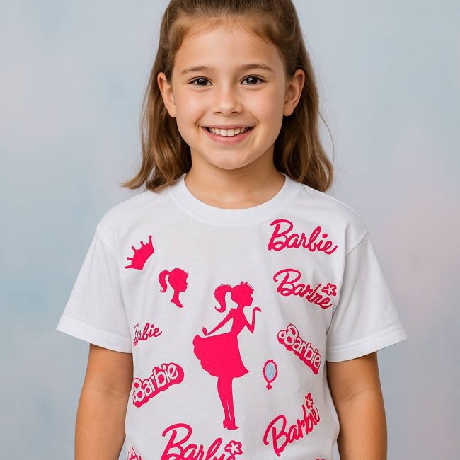 لباس بچه گانه دخترانه اسپورت باربی (کراپ سفید) در سایز های مختلف موجود هست